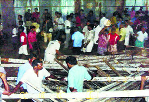 അരീക്കോടിനടുത്ത് ഫുട്ബോള് ഗാലറി തകര്ന്നു: നൂറിലധികം പേര്ക്ക് പരിക്ക്